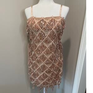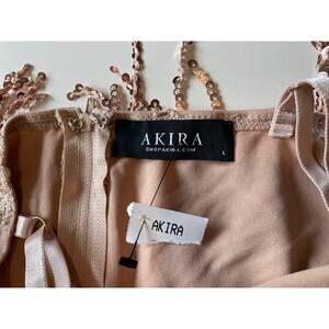 Akira Sequined Mini Dress Rose Gold NWOT Sheath Lace Up Sides Sz L Party Event