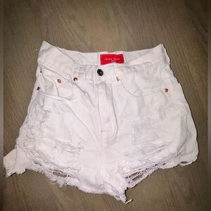 Akira White Destructed Stretchy High Waist Denim Shorts size Small