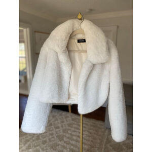 Akira White Faux Fur Cropped Coat Dayanne Glam Classy L Bride Bridal Wedding