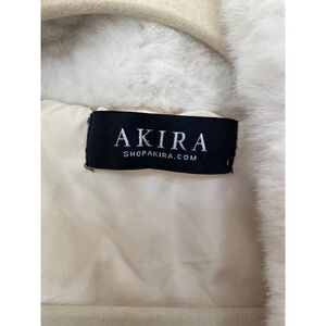 Chic and cozy Akira cropped faux fur coat in snowy white. Features a wide lapel collar, full lining, and glamorous cropped cut—perfect for layering over dresses or sleek streetwear. In gently pre-owned condition with light interior markings (see photos).