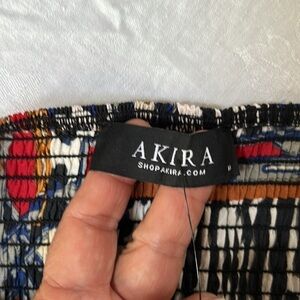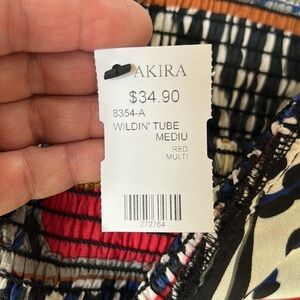 Akira Wildin’ Tube Satin Top. Vintage inspired design. Shirred elastic tube top underneath. Strapless design. Tie back closure. 95% polyester, 5% spandex. Hand wash. Size Medium