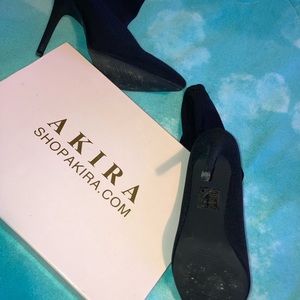 Akira black sock heel in a size 8 1/2. Only worn once comes with box also.