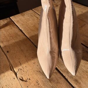 Up for grabs! Worn once super Sexy faux python gold heel in my opinion sizing is more of a true 8 although marked 9 tall boot