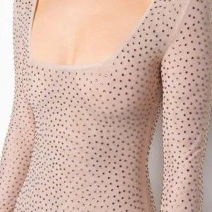 NWT pretty sheer bodycon dress by Akira. Crystal embellished. Nude color transparent. Back zipper closure