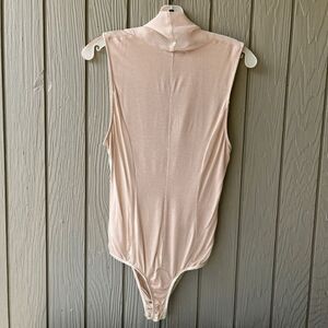Akira Blush Drape Front Bodysuit Sz L Deep V Snap Closure Sleeveless Sexy