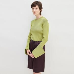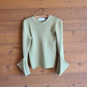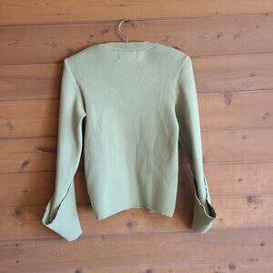 Akiranaka Erin Panel Cuff Knit Top in Green Long Sleeve Size 2 Ribbed Stretchy