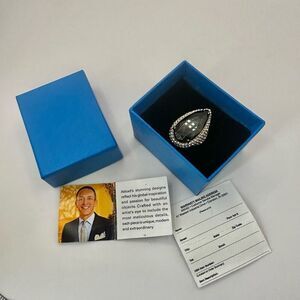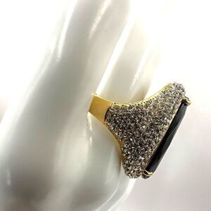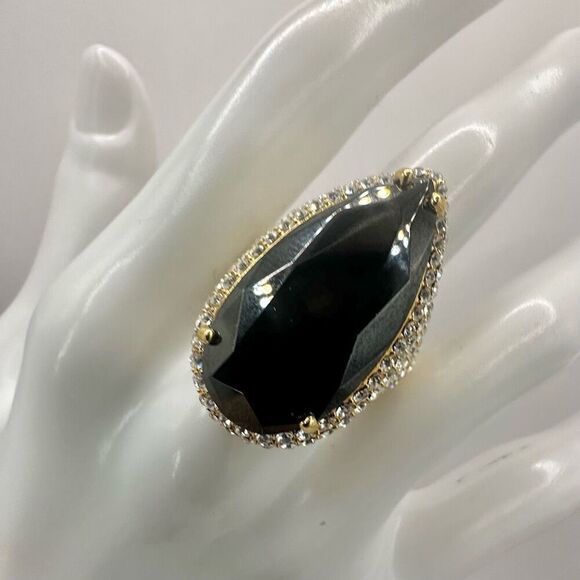 Akkad black rhinestone pear shaped cocktail Ring NWT