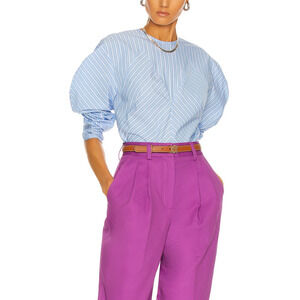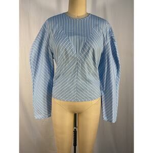 Aknvas 'Margot' Blue Cotton Top Size 0: hidden back zip closure, balloon sleeves.