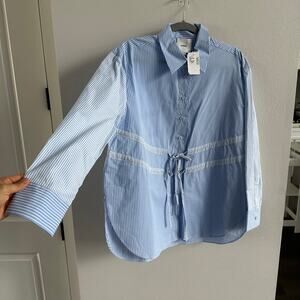 Aknvas Marina Tie Front Poplin Top Size Small New