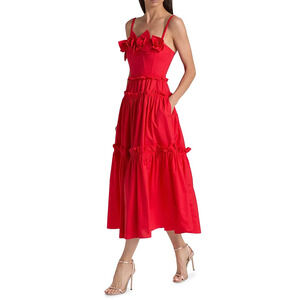 Size US 4 New without hang tag, pristine condition The Rach midi-dress from Aknvas is crafted of cotton. This tiered silhouette is detailed with rosettes at the square neck. Square neck Fixed straps Back zip closure 100% cotton Dry clean Imported SIZE & FIT About 44" from shoulder to hem Model measurements: 5'10" tall
