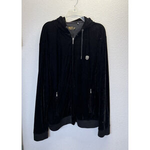 Akoo & Co Men’s 2XL Black Velour Zip Hoodie Jacket Streetwear Skull
