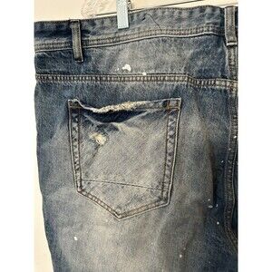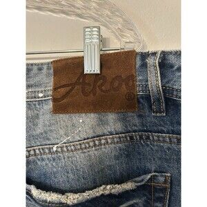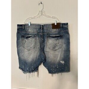 Akoo Denim Splatter Distressed Shorts With Patches Mens 44
