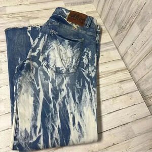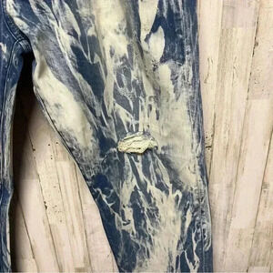 Akoo Empire Brand 40x33 Blue Acid Washed Paint Splatter Men's Baggy Jeans