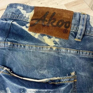 These jeans are a size 40 with a mid-rise and straight fit, and have a 33-inch inseam. They are machine washable and easy to care for. The Akoo brand is known for its high-quality denim, and these jeans are no exception. They are perfect for anyone looking for a stylish and comfortable pair of jeans.
