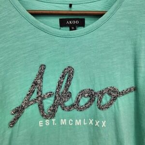 Akoo Mens Crew Neck T Shirt Short Sleeves Embroidered Logo Mint Blue Size XL