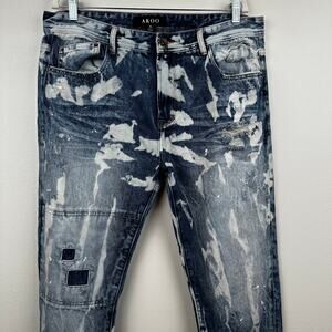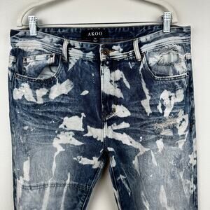 Akoo Men's Jeans Denim Bleached Streetwear No Rivals Fit Size 36 Grunge Hip Hop