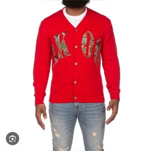 Akoo Mens Roe Sweater (Chili Pepper) Animal Print Embroidered Size S