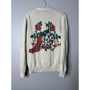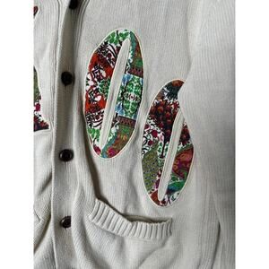 Akoo Roe Mens Cardigan Small Patchwork Varsity Preppy Animal Print Button Ivory