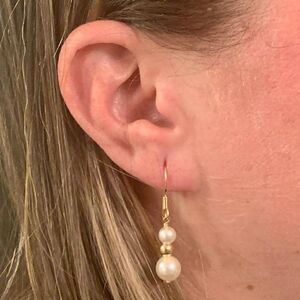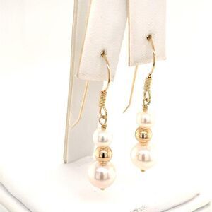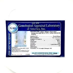 Akoya Pearl Earrings 14 KT Gold 8.10-5.50 mm Certified $799 013386