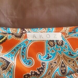 Akoz Womens Blouse Boho Bohemian Long Rolled Up Button Sleeve Size large Retro