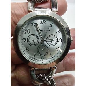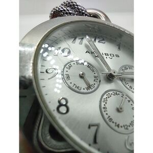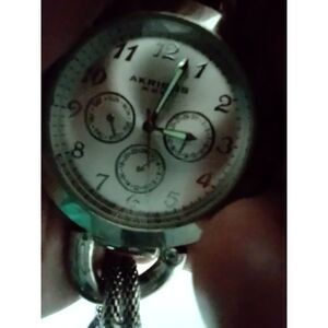 Akribos XXIV Ladies Watch AK564SS - I really do like Akribos watches they have a nice look to them. The watch does have the day 24-hour and date on the dials on the face. The crystal does have some deep scratch marks that are in the crystal that can be seen. Check out the photos for that. The watch has a brand new battery is running great. The scuff marks may be able to be polished out. The wash bracelet has partial mesh in the bracelet. Definitely does have a different look to it or the bracelet aspect. There are parts of the silver on the bracelet on both sides that are worn off. Check out the photos for more details and aspects of the watch