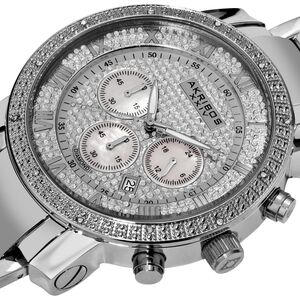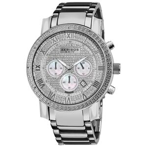 Akribos XXIV Silver and Black Chronograph Watch 2ct Genuine Diamonds