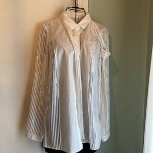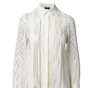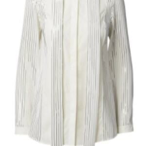 Akris Blouse with Foil Pleats and Shirt Collar white and silver size 12