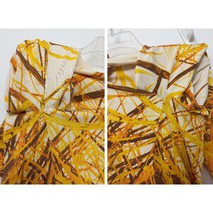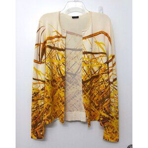 Akris Grass Print Silk Cardigan Sweater Yellow Straw Hay Stripe Button Down 10