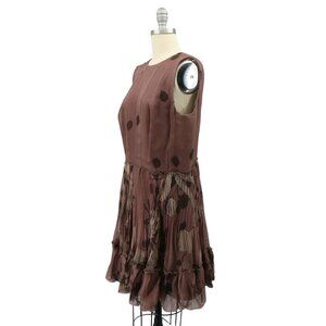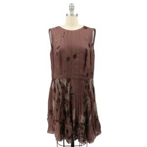 Akris Mocha Mauve Silk Applique Leaf Vine Pleated Sleeveless Party Dress 12