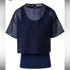 Absolutely stunning top from designer, Akris. Rich dark navy blue floral embroidery. Comes with under liner tank but could wear without if looking for a little more of a sheer long. Impeccable quality, like new condition