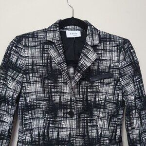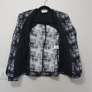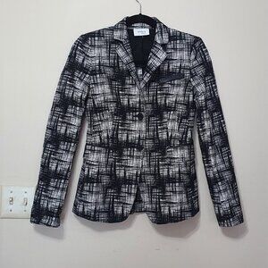 Features: long sleeves, partially lined, V-neck, 3 faux front pockets, 2 button closure, faux leather details, textured