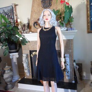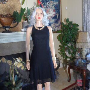 Elegant and understated, this Akris Punto sleeveless dress embodies modern sophistication through exquisite craftsmanship and timeless tailoring. The halter neckline and subtle A-line silhouette create a graceful, flattering fit, while the embroidered eyelet texture adds a touch of depth and femininity. Details:Brand: Akris Punto. Size: US 4 / FR 36 / DE 34. Color: Black. Design Features: Halter neckline with fitted bodice. Allover embroidered eyelet texture. Subtle A-line silhouette. Knee-length hem with scalloped effect. Hidden back zip closure. Fully lined for comfort and coverage. Approximate Measurements: Bust 34", waist 28", hips 34", length 37". Condition: Excellent pre-owned condition – clean and well maintained. Made in: Romania. Comes from a smoke free home.