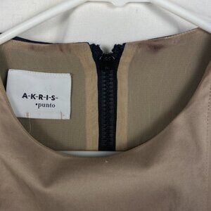 This dress made by Akris Punto is a size unknown and is a tan and black color. This item is in good condition with some discoloration throughout. It is made of unknown semi stretchy fabric(s). It is considered to be business casual style. This item is perfect for any occasion, but especially for the office!