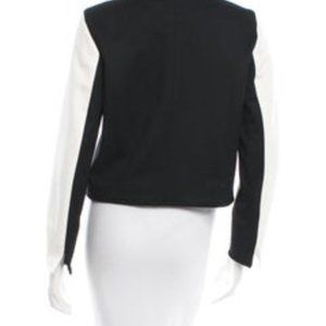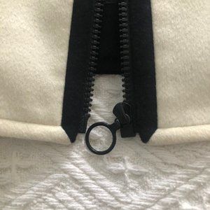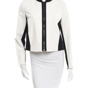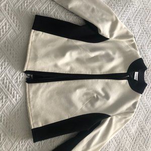 Soft, comfortable and great looking Akris Punto black and white bomber-style zippered wool and cashmere jacket. Three season, perfect for the office. Size 10. Perfect condition, like new.