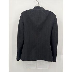Akris Punto Blazer Women's Size 8 Black Grey Striped Wool Leather Jacket Evening