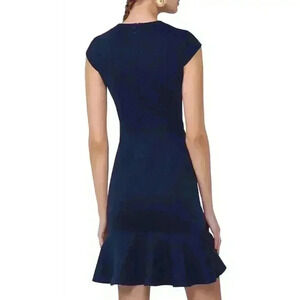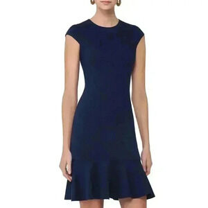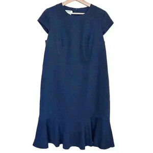Akris Punto Cap-Sleeve Jersey Flounce Hem Dress | Navy Blue | SZ 14