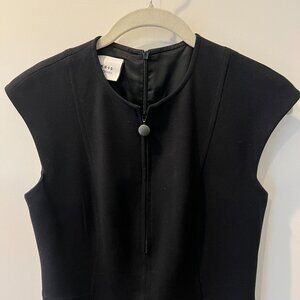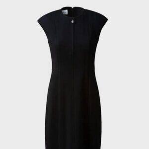 A hidden front zipper sets the sporty tone for a minimalist sheath impeccably tailored for a precise fit.