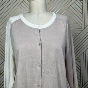 Akris Punto Cardigan Sweater Linen-BlendContrast Light Taupe Cream Size US 10