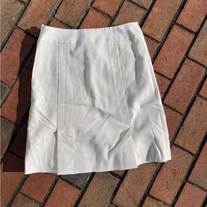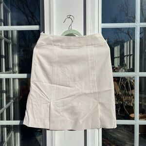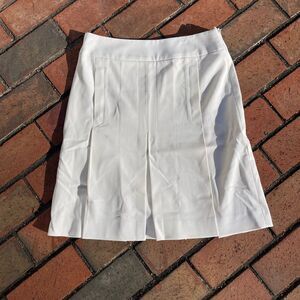 Gorgeous akris Punto cotton and wool pleated skirt. In excellent used condition. Beautiful cream color. Two front pleats and kick pleat in the back. Back zip.