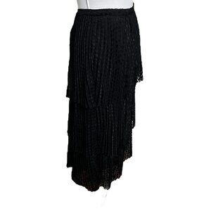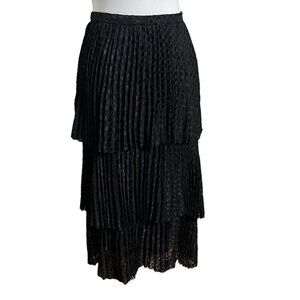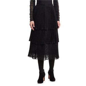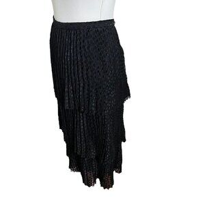 Akris Punto Dot Devore Midi Skirt Black Women’s Size 12 Pleated Tiered