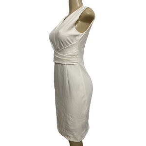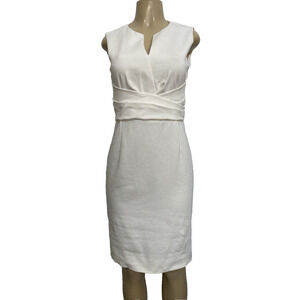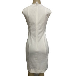 Akris Punto Dress Sheath Ivory Split Neck Sleeveless Lined Knee Length Stretch 6