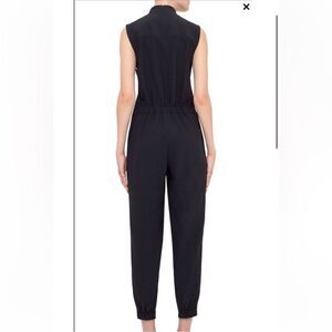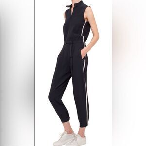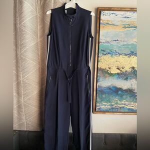 Akris Punto Front Zip Jumpsuit Navy Blue Mesh Side-Stripe Sleeveless Sz 6