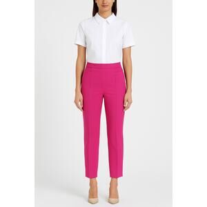 These Akris Punto straight-leg pants are the perfect blend of timeless tailoring and bold, modern color. Crafted in a vibrant fuchsia pink, they feature a sleek contoured waistband, pressed front creases, and side slit pockets that give them a polished, flattering finish. The cotton-nylon blend with added stretch provides both structure and comfort, while the full cupro lining ensures breathability and luxury wear. Known for understated elegance, Akris Punto pieces are wardrobe staples for women who value elevated everyday style. These pants are perfect for workwear, career dressing, or pairing with a statement blouse for evening.