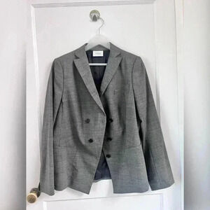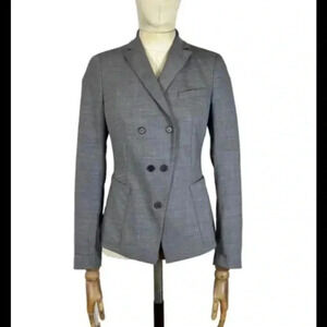 Akris Punto Grey Double Breasted Wool Blazer $1028 Like New Size 12