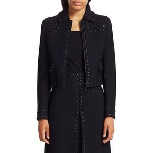 Akris Punto Grommet Cropped Jacket Women 4 Black Wool Studded Blazer Luxury