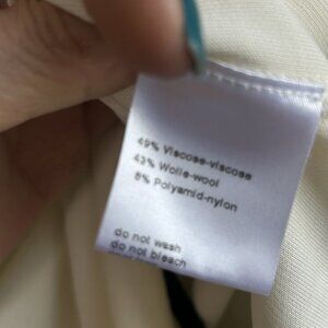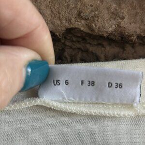 Akris Punto Ivory Black Trim Asymmetrical Hem Long Sleeve Wool Blend Top Size 6