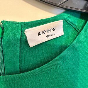 Viscose/polyester kelly green Akris Punto sweater with short flutter sleeves. Zipper on back. Originally purchased at Saks Fifth Avenue.