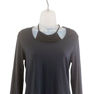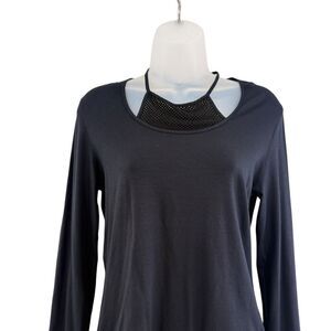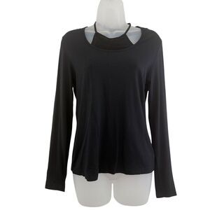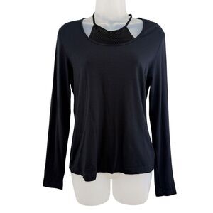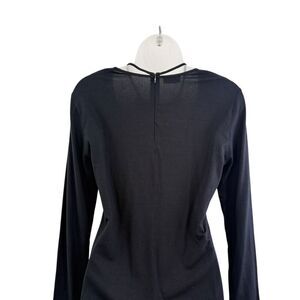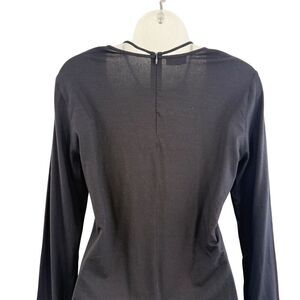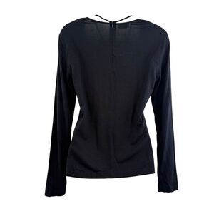 Akris Punto Knit Top Size 10 Cotton Mock Neck Black Pullover Back Zip