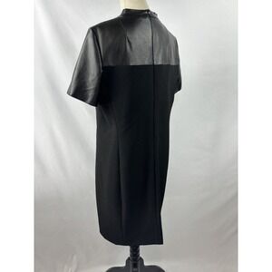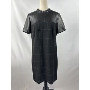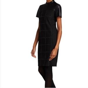 Akris Punto Mock Neck Knee Length Dress Black 12 Embellished Faux Leather