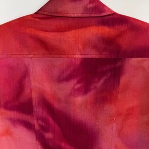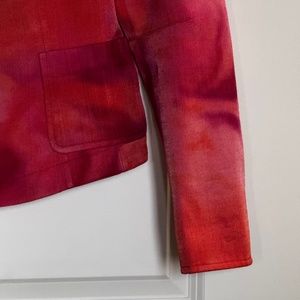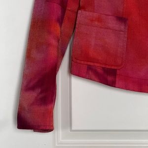 Gorgeous multi color jacket from Akris Punto, size M - US 8. Accidentally ordered the wrong size and cannot return. It is such an amazing color with variations of reds and oranges mixed together. Waist length; Pointed Collar; Patch Pocket & Button Front. Excellent condition. Measures approx: Bust: 34.75", Waist: 33.5", Shoulder: 15.5", Length: 22.75", Sleeve: 29".